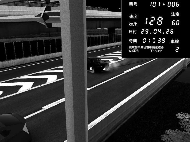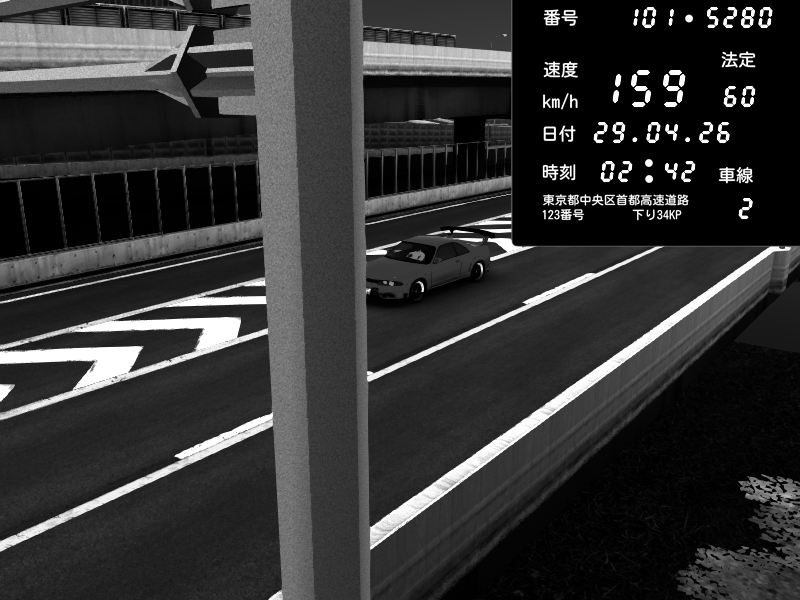 | 2026/04/29 02:42 | C1内回り 竹橋JCT | 159 / 60 km/h | Nissan Skyline GTR R33 (S3 - Wangan) | CAPTURE |