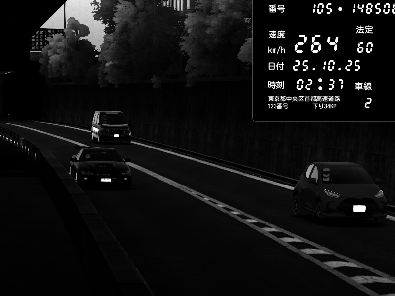 | 2025/10/25 02:37 | C1外回り 新富町 | 186 / 60 km/h | Nissan Skyline GT-R R34 Nismo Omori Factory S1 | CAPTURE |