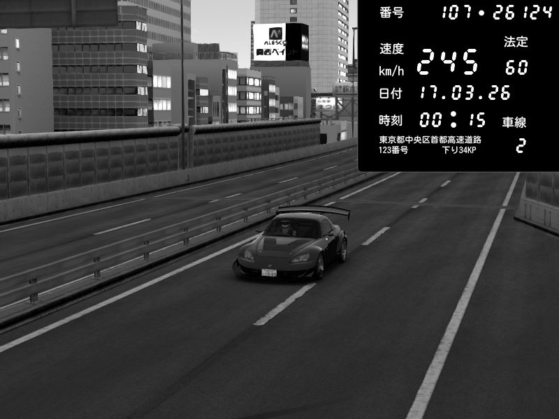 | 2026/03/17 00:15 | C1外回り 芝公園 | 245 / 60 km/h | Honda S2000 Turbo GT1 Amuse (AP1) | CAPTURE |