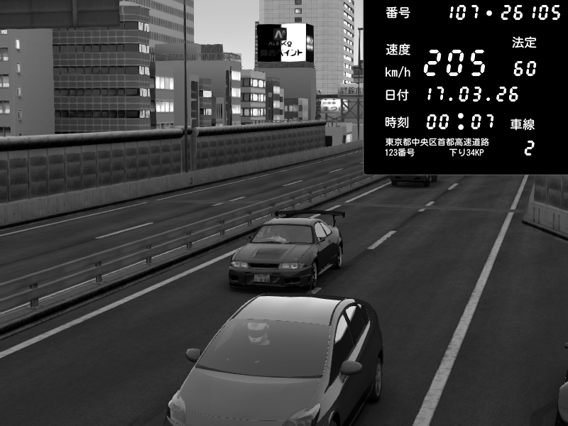 | 2026/03/17 00:07 | C1外回り 芝公園 | 205 / 60 km/h | Nissan Skyline GTR R33 (S3 - Wangan) | CAPTURE |