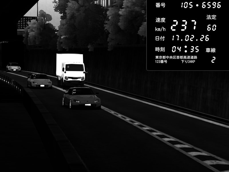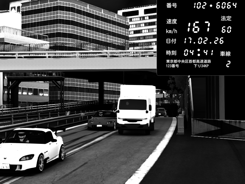 | 2026/02/17 04:41 | C1外回り 新富町 | 167 / 60 km/h | Honda S2000 (AP2 - Legendary) | CAPTURE |
