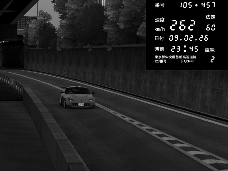 | 2026/02/09 23:45 | C1外回り 京橋 | 262 / 60 km/h | Honda S2000 (AP2 - Legendary) | CAPTURE |