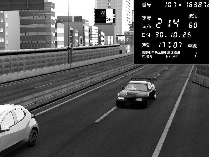 | 2025/10/30 17:02 | C1外回り 新富町 | 186 / 60 km/h | Nissan Skyline GTR R33 (S3 - Wangan) | CAPTURE |