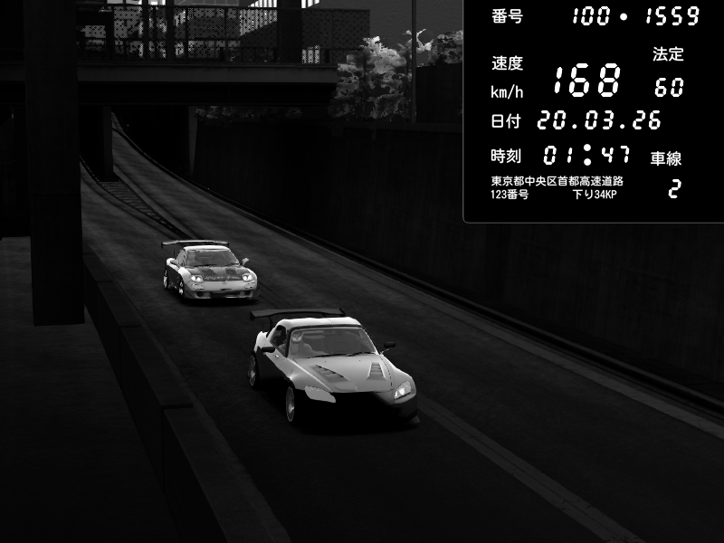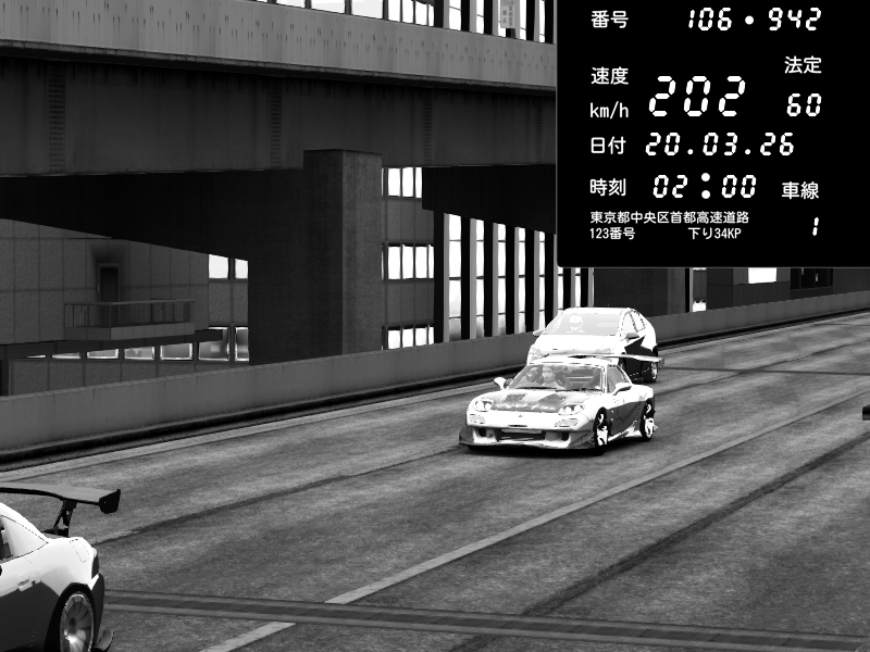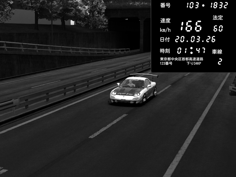 | 2026/03/20 01:47 | C1内回り 京橋 | 168 / 60 km/h | Mazda RX-7 FD3S RE Amemiya | CAPTURE |