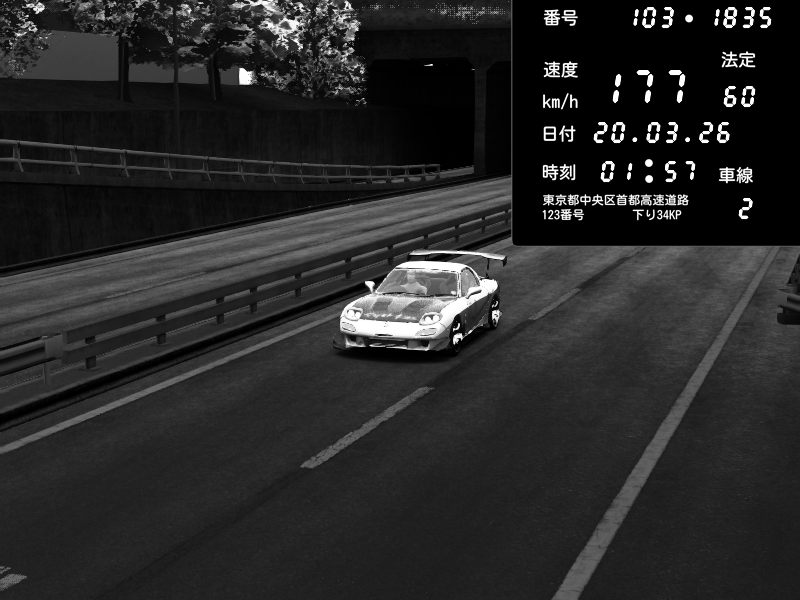 | 2026/03/20 01:57 | C1内回り 京橋 | 177 / 60 km/h | Mazda RX-7 FD3S RE Amemiya | CAPTURE |
