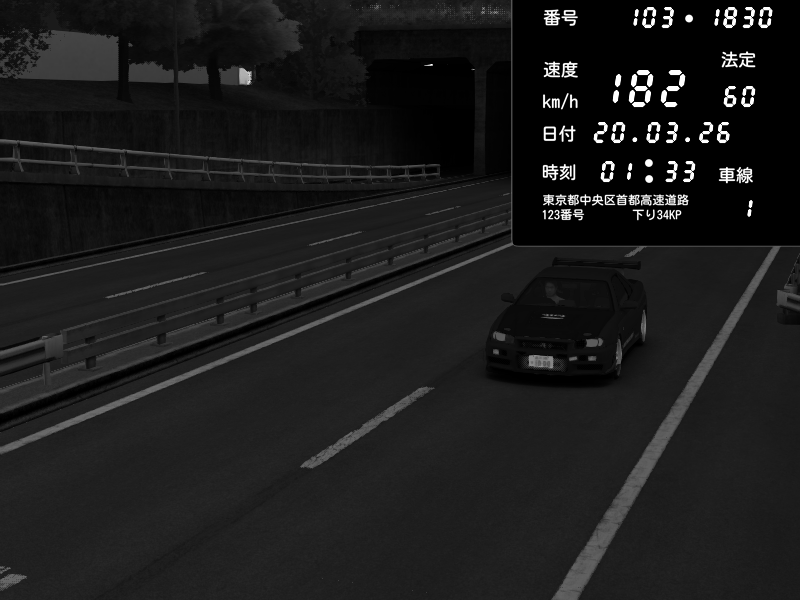 | 2026/03/20 01:33 | C1内回り 銀座 | 182 / 60 km/h | Nissan Skyline GT-R R34 Nismo Omori Factory S1 | CAPTURE |