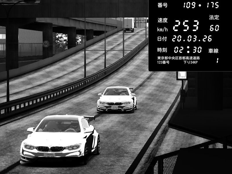 | 2026/03/20 02:30 | K1上り 子安 | 253 / 60 km/h | BMW M4 crash.Sp Varis Widebody | CAPTURE |