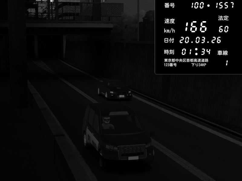 | 2026/03/20 01:34 | C1内回り 京橋 | 166 / 60 km/h | Nissan Skyline GT-R R34 Nismo Omori Factory S1 | CAPTURE |