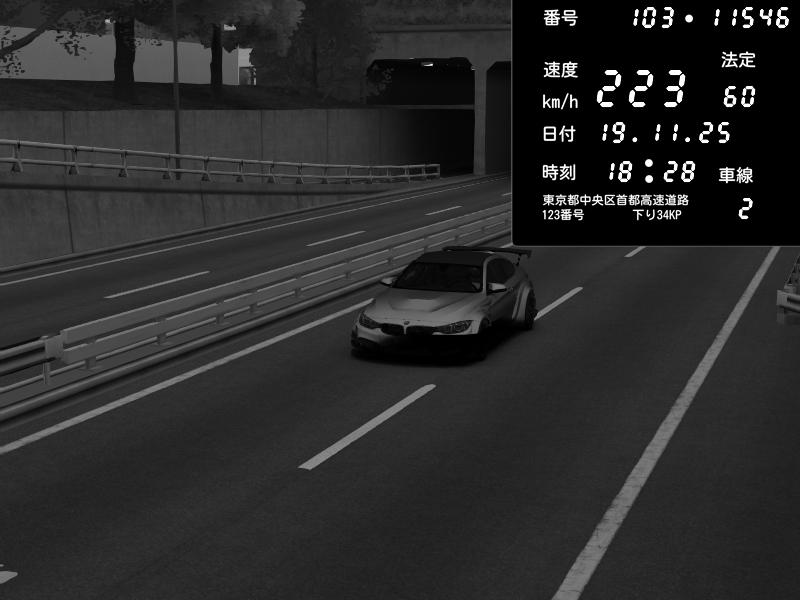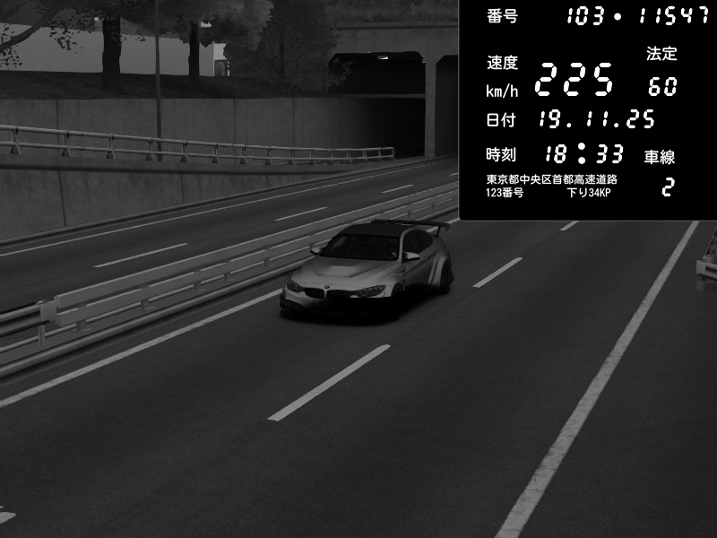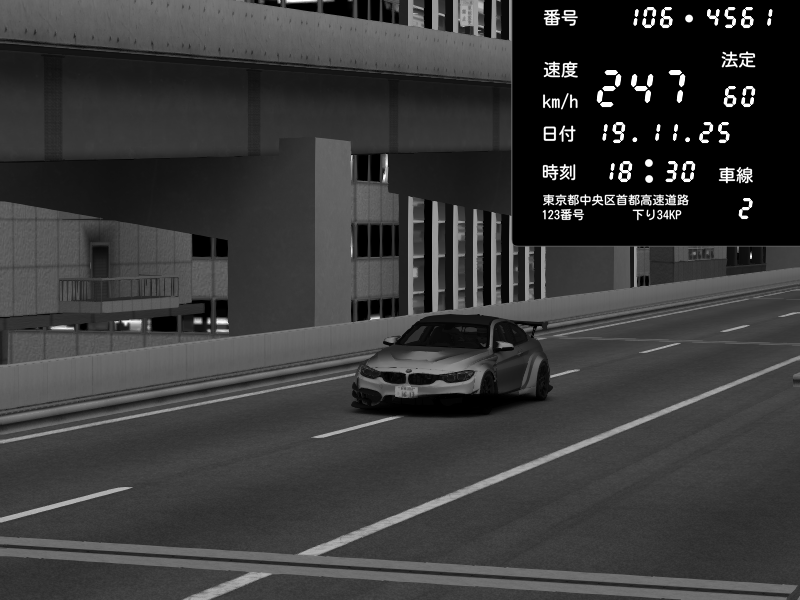 | 2025/11/19 18:33 | C1内回り 銀座 | 225 / 60 km/h | BMW M4 crash.Sp Varis Widebody | CAPTURE |