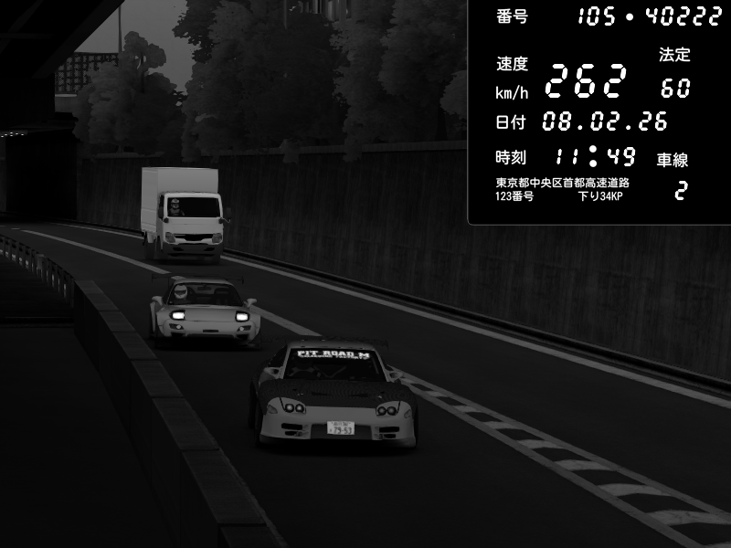 | 2026/02/08 11:49 | C1外回り 京橋 | 262 / 60 km/h | Mazda RX-7 FD3S FEED Afflux GT3 | CAPTURE |