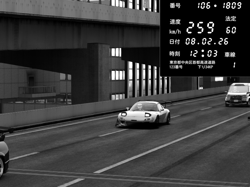 | 2026/02/08 11:54 | 4号下り 代々木 | 158 / 60 km/h | Mazda RX-7 FD3S FEED Afflux GT3 | CAPTURE |