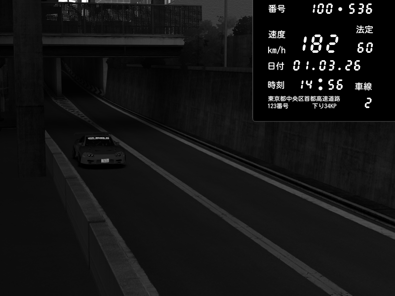 | 2026/03/01 14:56 | C1内回り 京橋 | 182 / 60 km/h | Pit Road M - Mitsubishi GTO Twin Turbo | CAPTURE |