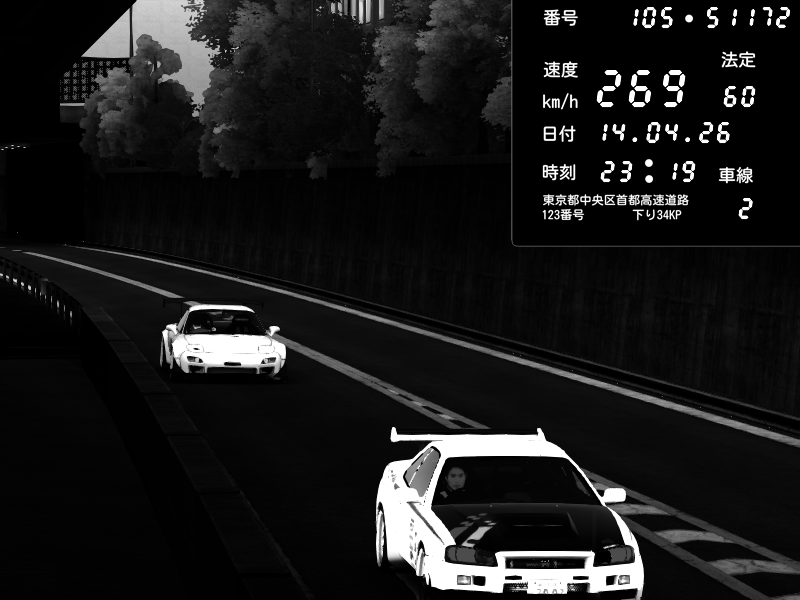| 2026/04/14 23:19 | C1外回り 京橋 | 269 / 60 km/h | Mazda RX-7 FD3S FEED Afflux GT3 | CAPTURE |