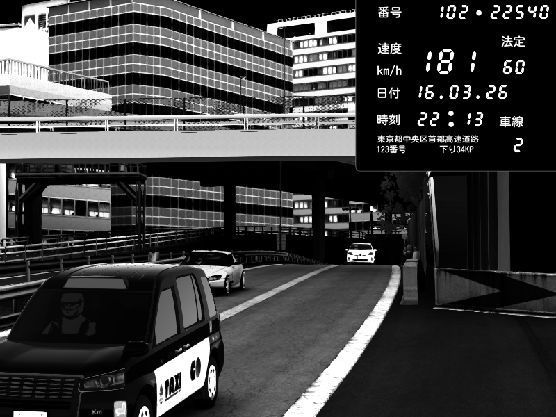 | 2026/03/16 22:13 | C1外回り 新富町 | 181 / 60 km/h | Honda S2000 (AP2 - Legendary) | CAPTURE |