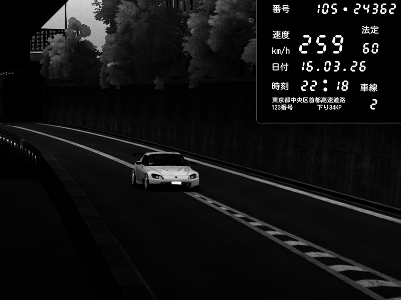 | 2026/03/16 22:01 | C1外回り 京橋 | 255 / 60 km/h | Honda S2000 (AP2 - Legendary) | CAPTURE |