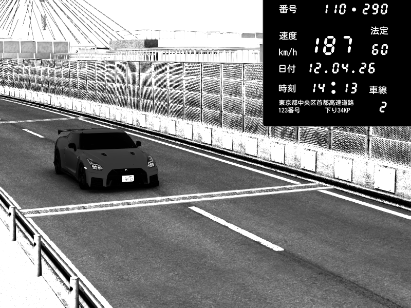 | 2026/04/12 14:13 | K1上り 羽田 | 187 / 60 km/h | Nissan GT-R NISMO 2017 | CAPTURE |