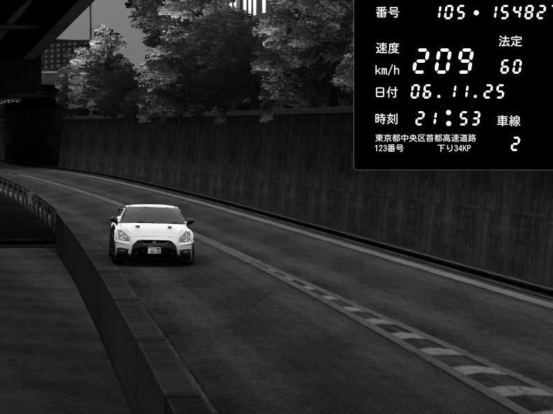 | 2025/11/06 21:53 | C1外回り 京橋 | 209 / 60 km/h | Nissan GT-R NISMO 2017 | CAPTURE |