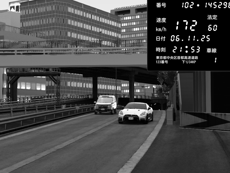 | 2025/11/05 22:29 | C1外回り 新富町 | 187 / 60 km/h | Nissan GT-R NISMO 2017 | CAPTURE |