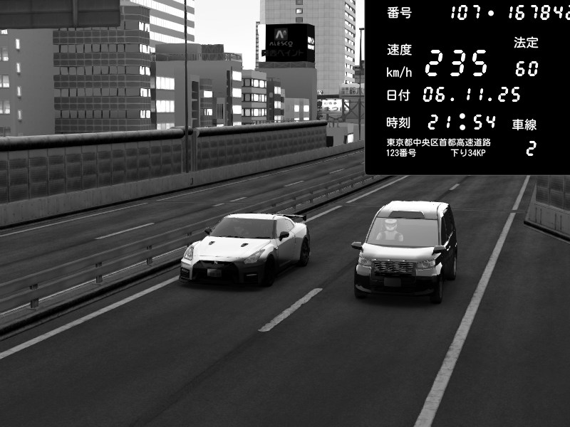 | 2025/11/05 22:29 | C1外回り 京橋 | 222 / 60 km/h | Nissan GT-R NISMO 2017 | CAPTURE |
