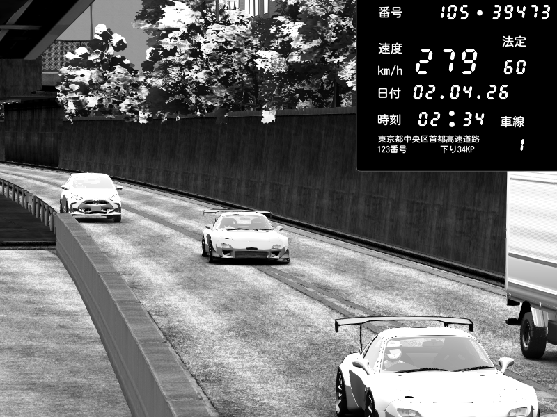 | 2026/04/02 02:29 | C1外回り 京橋 | 260 / 60 km/h | Mazda RX-7 FD3S FEED Afflux GT3 | CAPTURE |