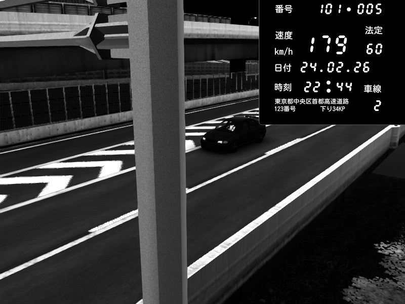 | 2026/02/24 22:44 | C1内回り 竹橋JCT | 179 / 60 km/h | Mitsubishi Lancer Evolution V Wangan Spec | CAPTURE |