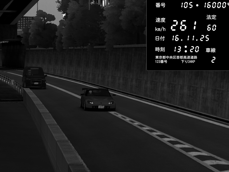 | 2025/11/16 13:20 | C1外回り 京橋 | 261 / 60 km/h | Honda S2000 (AP2 - Legendary) | CAPTURE |