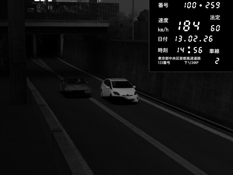 | 2026/02/13 14:56 | C1内回り 京橋 | 184 / 60 km/h | BMW M4 crash.Sp Varis Widebody | CAPTURE |