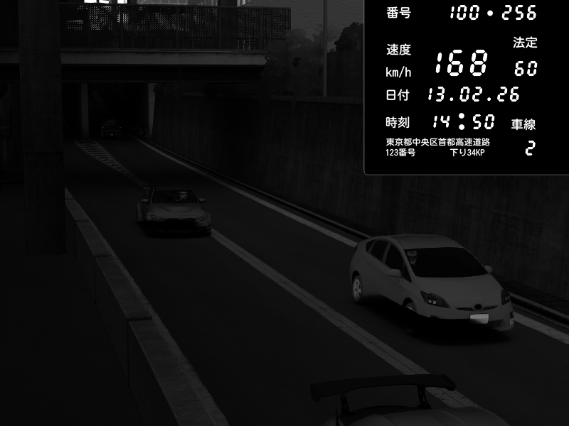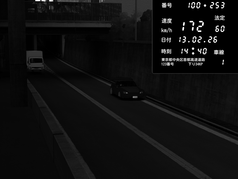 | 2026/02/13 14:36 | C1内回り 京橋 | 174 / 60 km/h | Honda S2000 Turbo GT1 Amuse (AP1) | CAPTURE |
