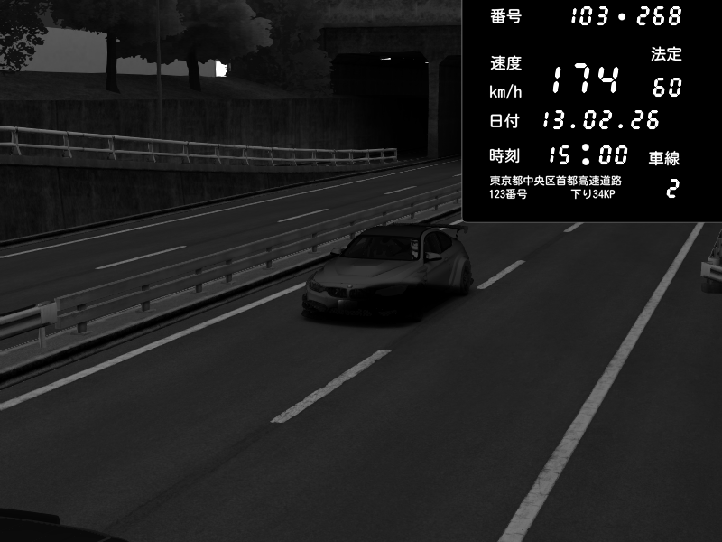 | 2026/02/13 15:00 | C1内回り 銀座 | 174 / 60 km/h | BMW M4 crash.Sp Varis Widebody | CAPTURE |