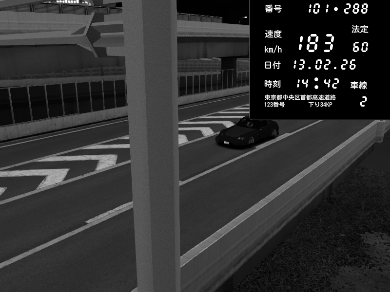 | 2026/02/13 14:46 | C1内回り 京橋 | 180 / 60 km/h | Honda S2000 Turbo GT1 Amuse (AP1) | CAPTURE |