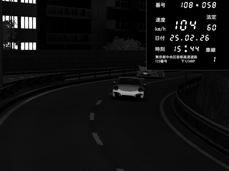 | 2026/02/25 15:44 | 4号下り 代々木 | 104 / 60 km/h | Porsche 911 GT3 RS | CAPTURE |