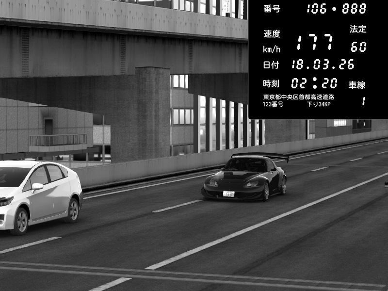 | 2026/03/18 02:29 | C1内回り 竹橋JCT | 105 / 60 km/h | Honda S2000 Turbo GT1 Amuse (AP1) | CAPTURE |