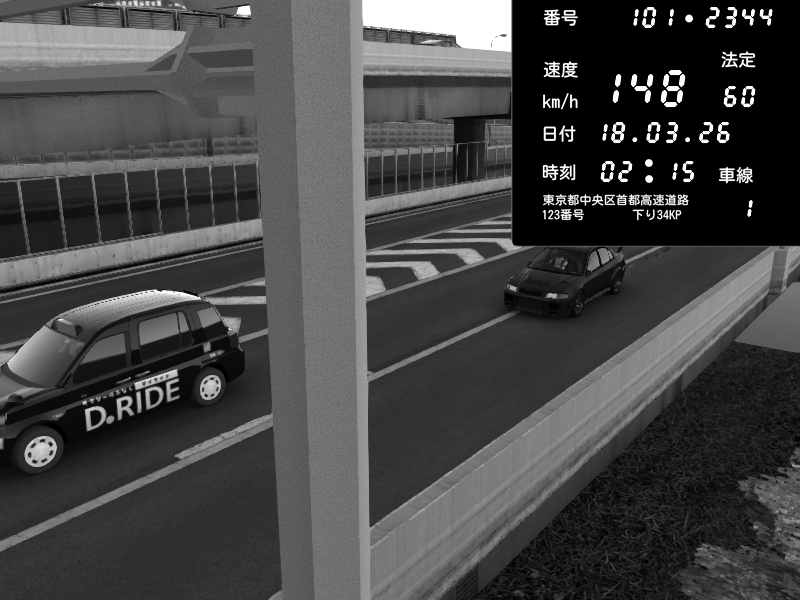 | 2026/03/18 02:15 | C1内回り 竹橋JCT | 148 / 60 km/h | Mitsubishi Lancer Evolution V Wangan Spec | CAPTURE |