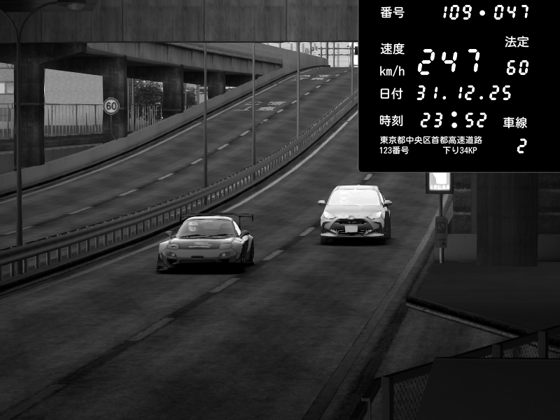 | 2026/01/01 00:22 | C1内回り 竹橋JCT | 176 / 60 km/h | Nissan Skyline GTR R33 (S3 - Wangan) | CAPTURE |