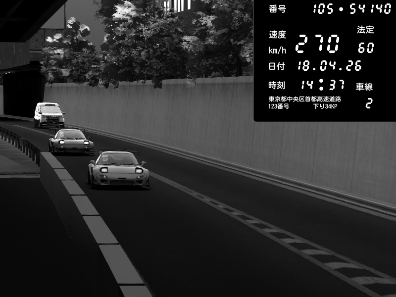 | 2026/04/18 14:37 | C1外回り 京橋 | 270 / 60 km/h | Mazda RX-7 FD3S FEED Afflux GT3 | CAPTURE |