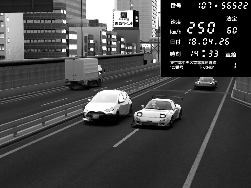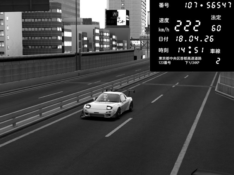 | 2026/04/18 14:37 | C1外回り 新富町 | 197 / 60 km/h | Mazda RX-7 FD3S FEED Afflux GT3 | CAPTURE |