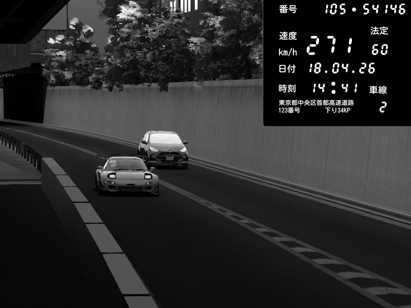 | 2026/04/18 14:41 | C1外回り 京橋 | 271 / 60 km/h | Mazda RX-7 FD3S FEED Afflux GT3 | CAPTURE |