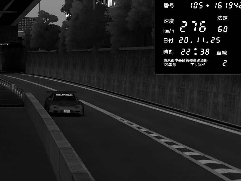| 2025/11/20 22:38 | C1外回り 京橋 | 276 / 60 km/h | Pit Road M - Mitsubishi GTO Twin Turbo | CAPTURE |