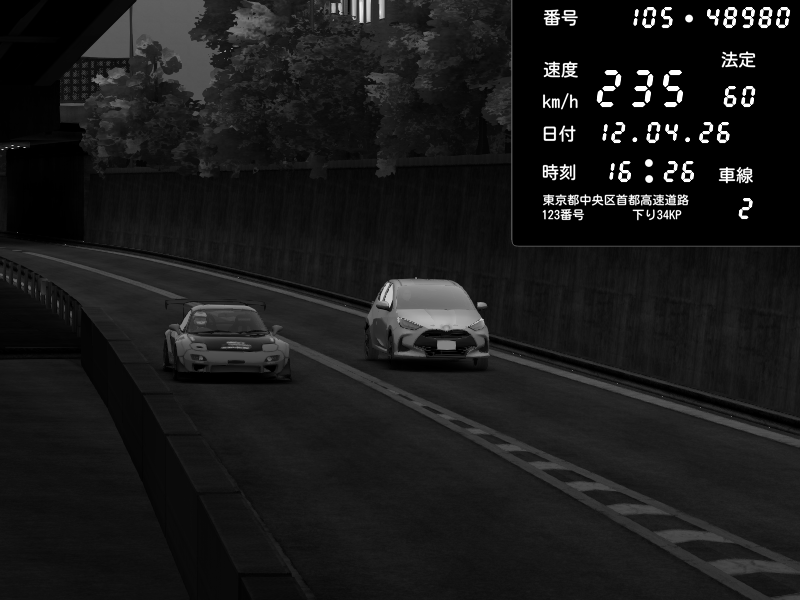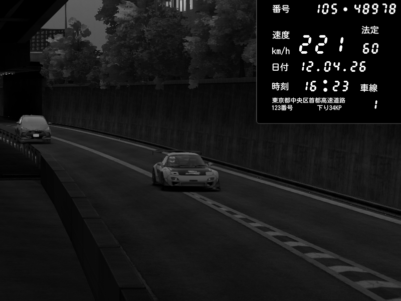 | 2026/04/12 16:26 | C1外回り 京橋 | 235 / 60 km/h | Mazda RX-7 FD3S FEED Afflux GT3 | CAPTURE |