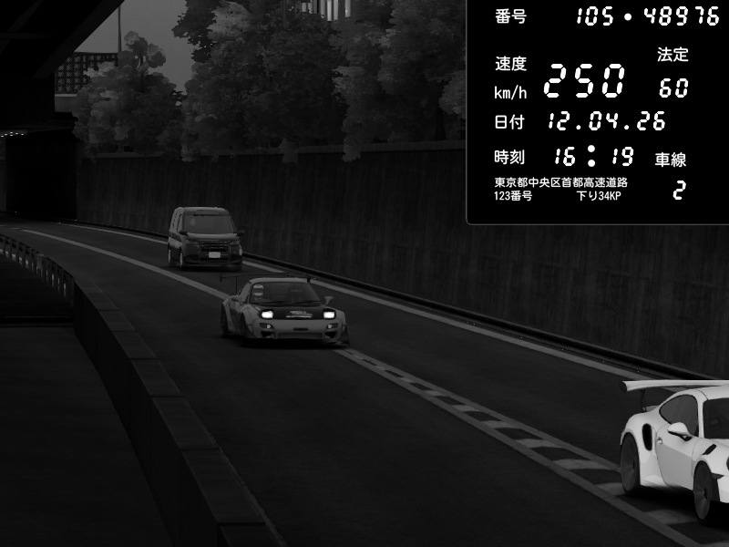 | 2026/04/12 16:19 | C1外回り 京橋 | 250 / 60 km/h | Mazda RX-7 FD3S FEED Afflux GT3 | CAPTURE |