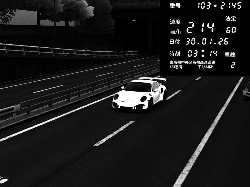 | 2026/01/30 03:14 | C1内回り 銀座 | 214 / 60 km/h | Porsche 911 GT3 RS | CAPTURE |