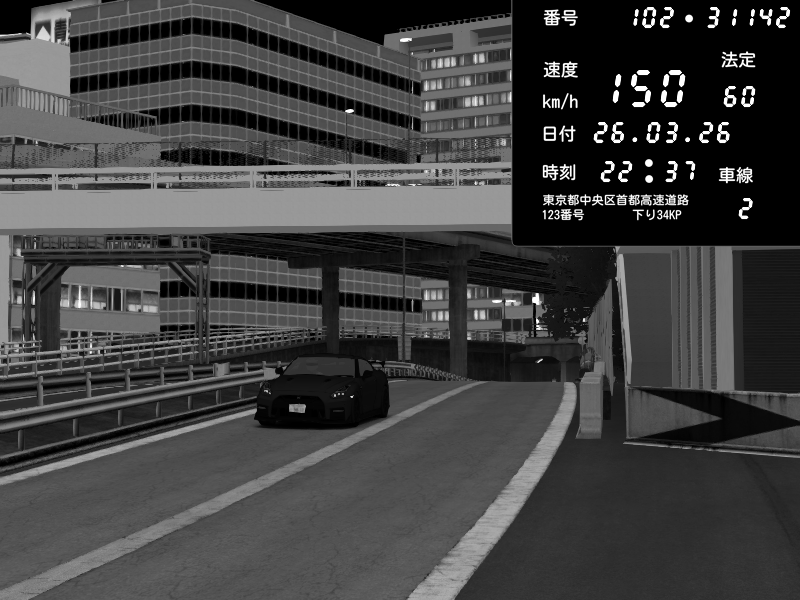 | 2026/03/26 22:37 | C1外回り 新富町 | 150 / 60 km/h | Nissan GT-R NISMO 2017 | CAPTURE |