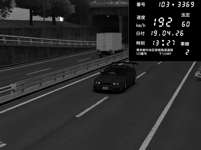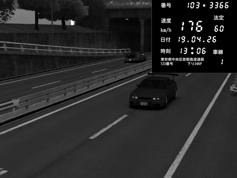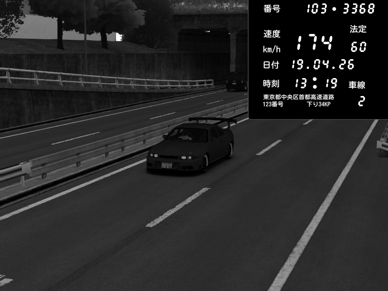 | 2026/04/19 13:19 | C1内回り 銀座 | 174 / 60 km/h | Nissan Skyline GTR R33 (S3 - Wangan) | CAPTURE |