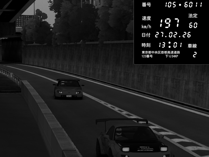 | 2026/02/27 13:01 | C1外回り 京橋 | 197 / 60 km/h | Honda S2000 (AP2 - Legendary) | CAPTURE |