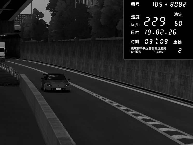 | 2026/02/19 03:09 | C1外回り 京橋 | 229 / 60 km/h | Honda S2000 (AP2 - Legendary) | CAPTURE |