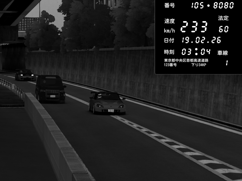 | 2026/02/19 03:04 | C1外回り 京橋 | 233 / 60 km/h | Honda S2000 (AP2 - Legendary) | CAPTURE |