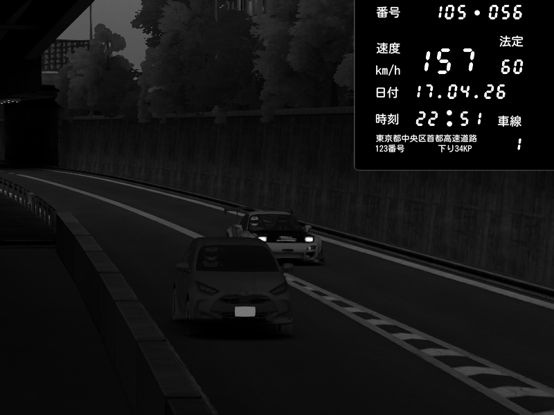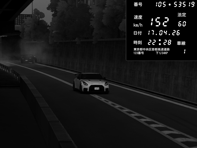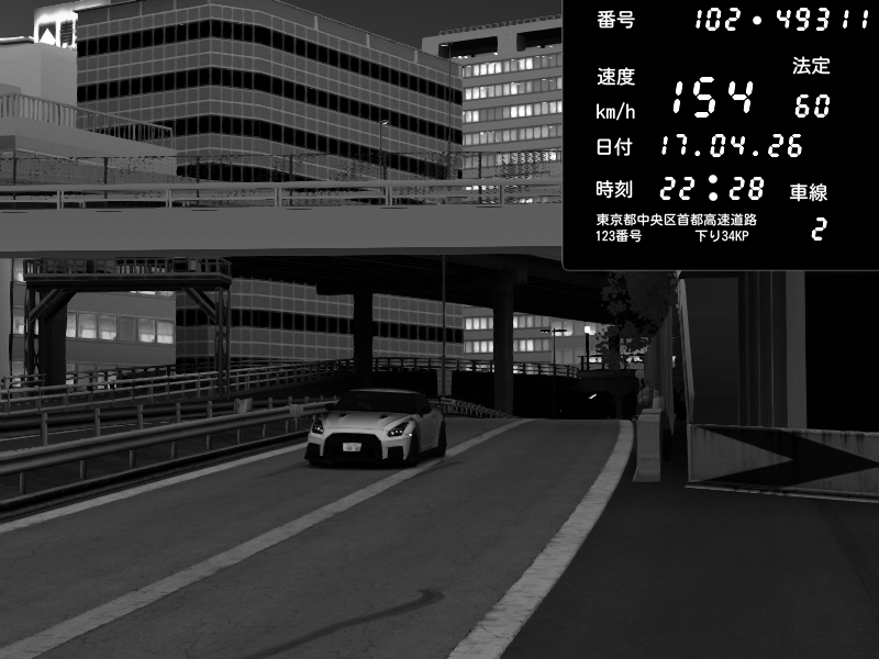 | 2026/04/17 22:28 | C1外回り 新富町 | 154 / 60 km/h | Nissan GT-R NISMO 2017 | CAPTURE |