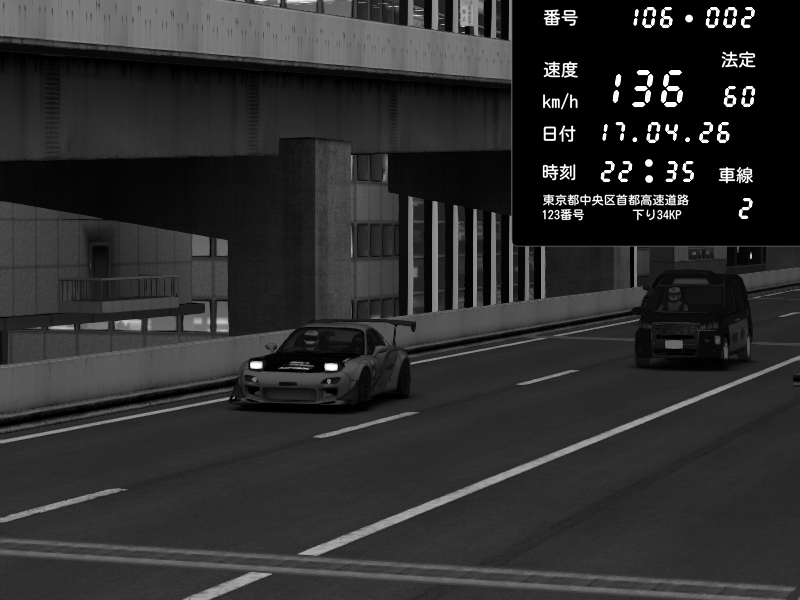 | 2026/04/17 22:54 | C1外回り 新富町 | 120 / 60 km/h | Mazda RX-7 FD3S FEED Afflux GT3 | CAPTURE |