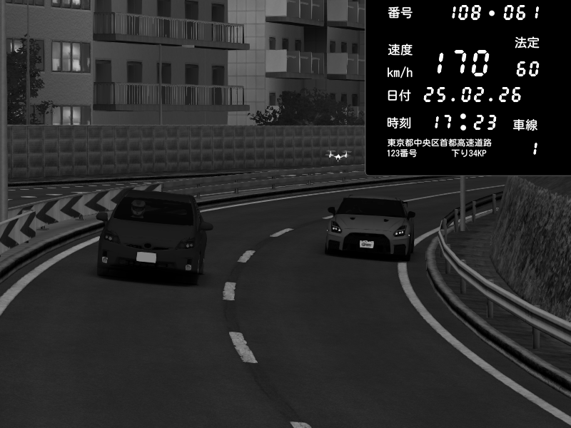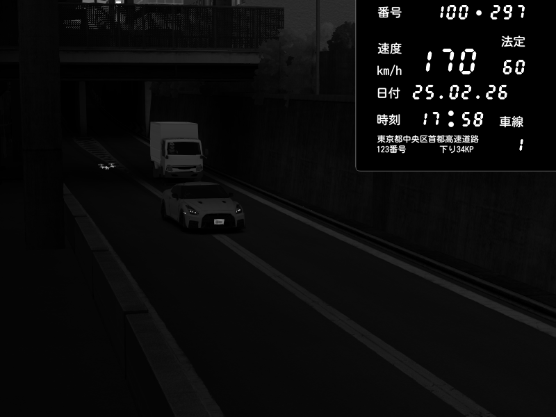 | 2026/02/25 17:23 | 4号下り 代々木 | 170 / 60 km/h | Nissan GT-R NISMO 2017 | CAPTURE |