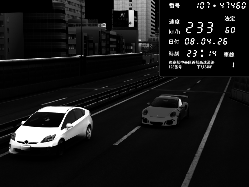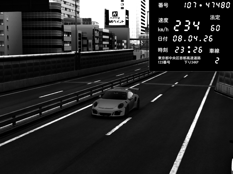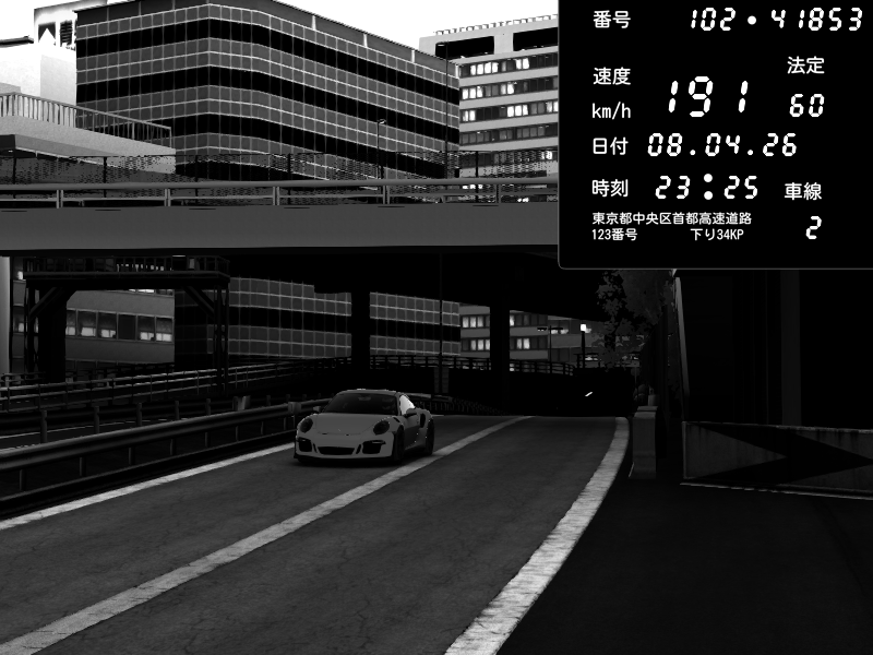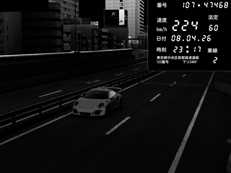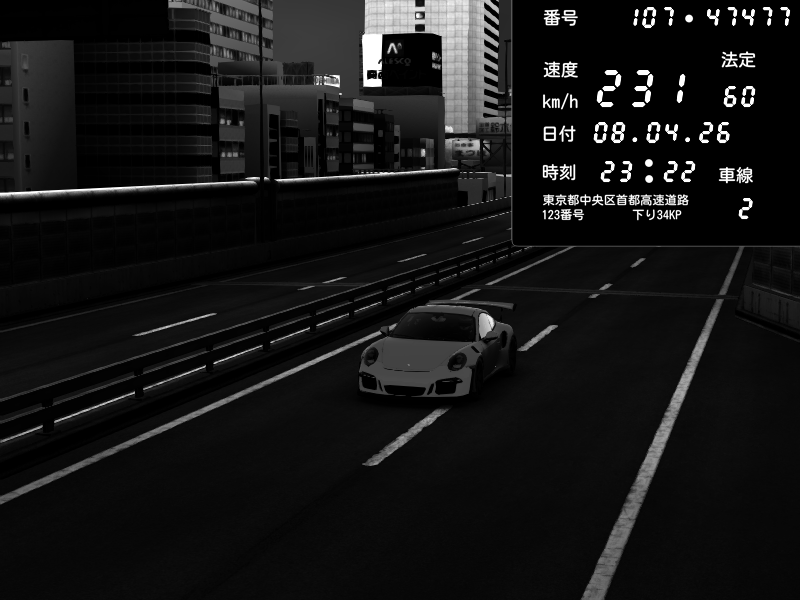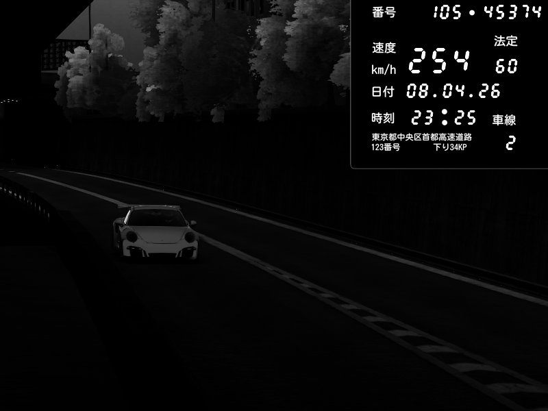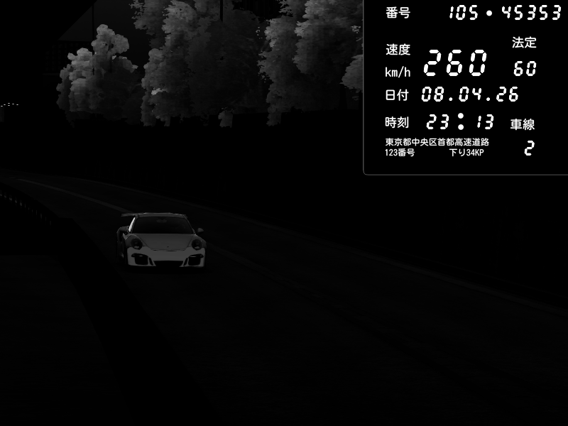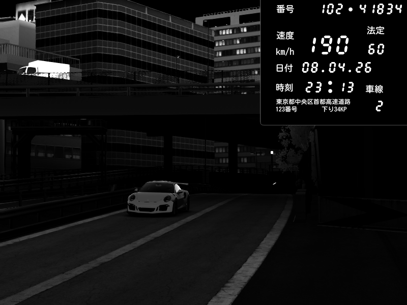 | 2026/04/08 23:13 | C1外回り 新富町 | 190 / 60 km/h | Porsche 911 GT3 RS | CAPTURE |